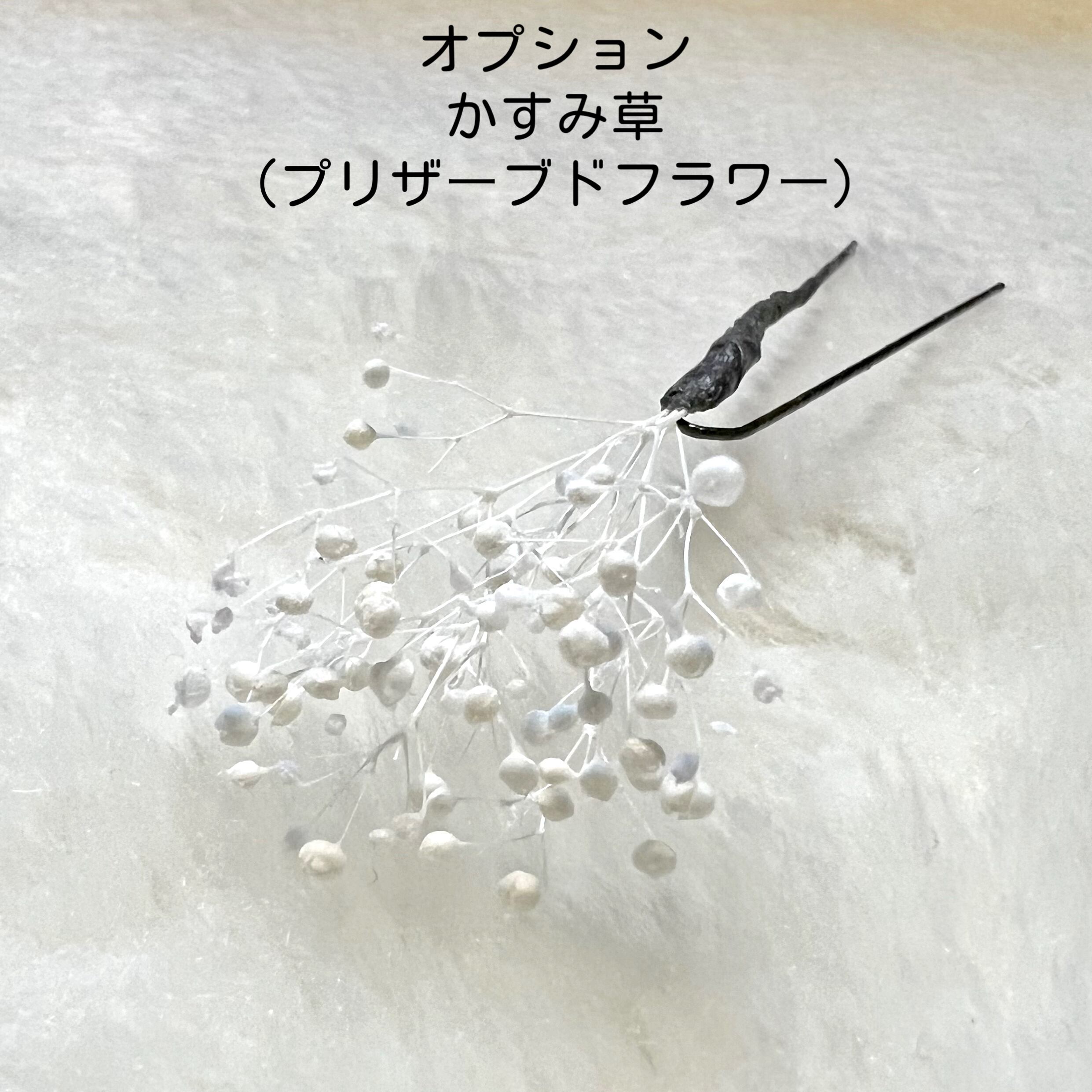 オプションのかすみ草(プリザーブドフラワー)と組み合わせても可愛いです。❀